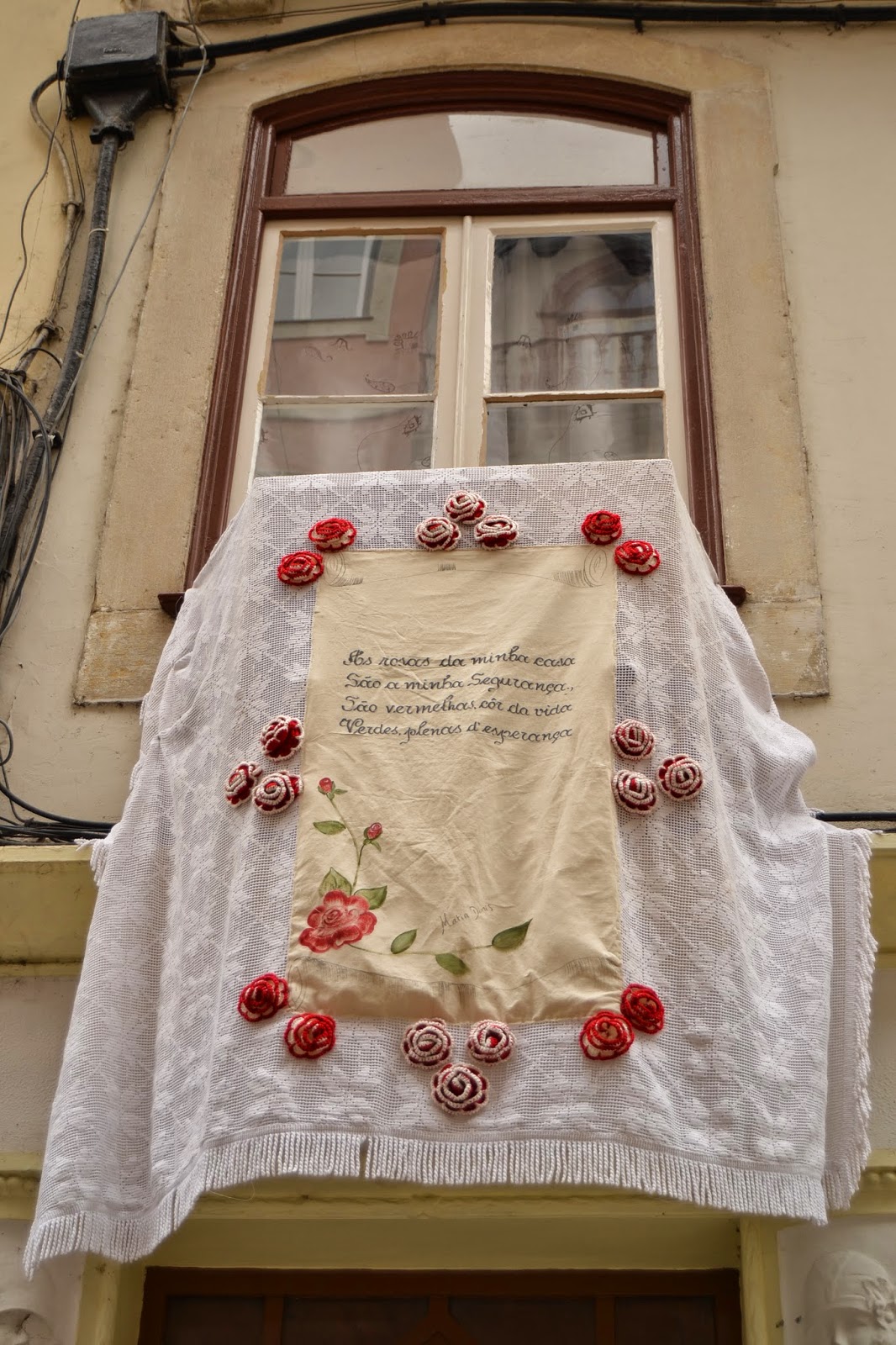 Desde os meus mais tenros anos que conheço o "Milagre das Rosas" em que nele esteve envolvida a Rainha Santa Isabel, que é a padroeira dessa linda cidade: Coimbra, mas nunca fui a essa festa, pelo que gostei imenso do 'post', fez fotos muito lindas, principalmente da imagem da santa e das colchas que alindam as janelas e sacadas. Também gostei do pormenor do banco de jardim.
